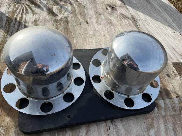 Chrome steel 2 piece rear axle top hat cover for semi truck. 10 holes Truck Mate (brand name ) $20/pair