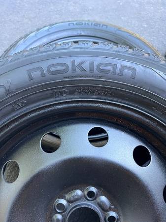 (4) Nokian Nordman winter tires size 235/55R17 mounted and balanced on steel rims. Rims have 5x108 bolt pattern. Used for 2 winters and still have plenty of tread.