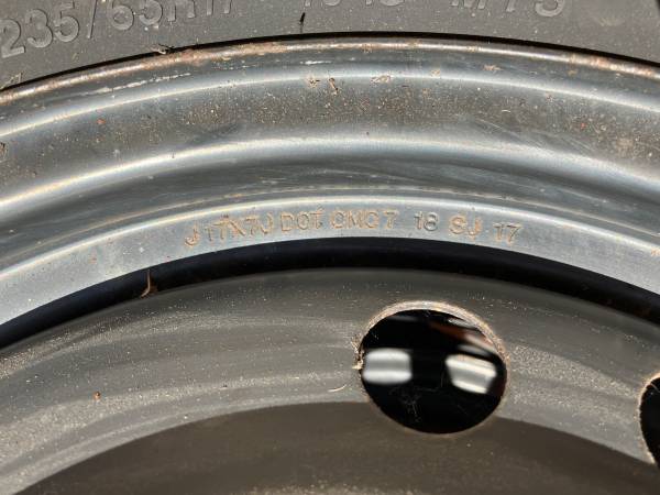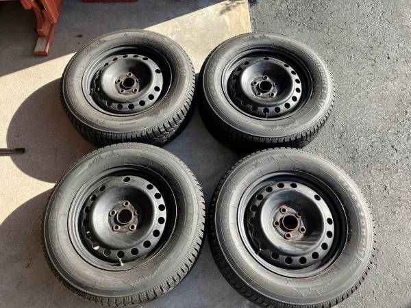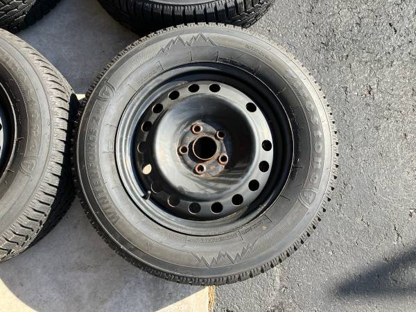 For sale: set of 4 Honda OEM 17" steel wheels previously used on a 2016 Honda Odyssey with 235/65R17 Firestone Winterforce 2 UV snow tires, full set of 20 lug nuts, and 4 installed TPMS sensors. May fit other years of Honda Odyssey or other vehicles, confirming fit is buyer's responsibility. See pictures for details.